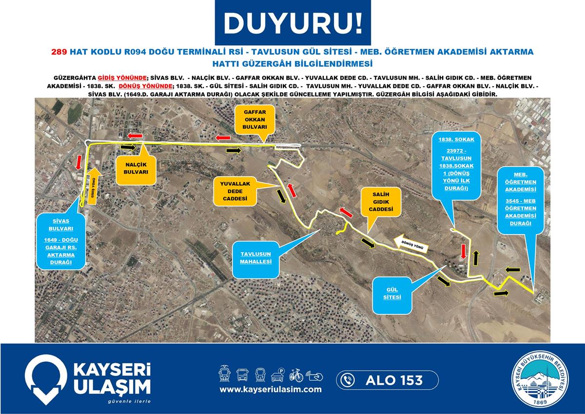 289 HAT KODLU R094 DOĞU TERMİNALİ RSİ - TAVLUSUN GÜL SİTESİ - MEB. ÖĞRETMEN AKADEMİSİ AKTARMA HATTI GÜZERGÂH BİLGİLENDİRMESİ