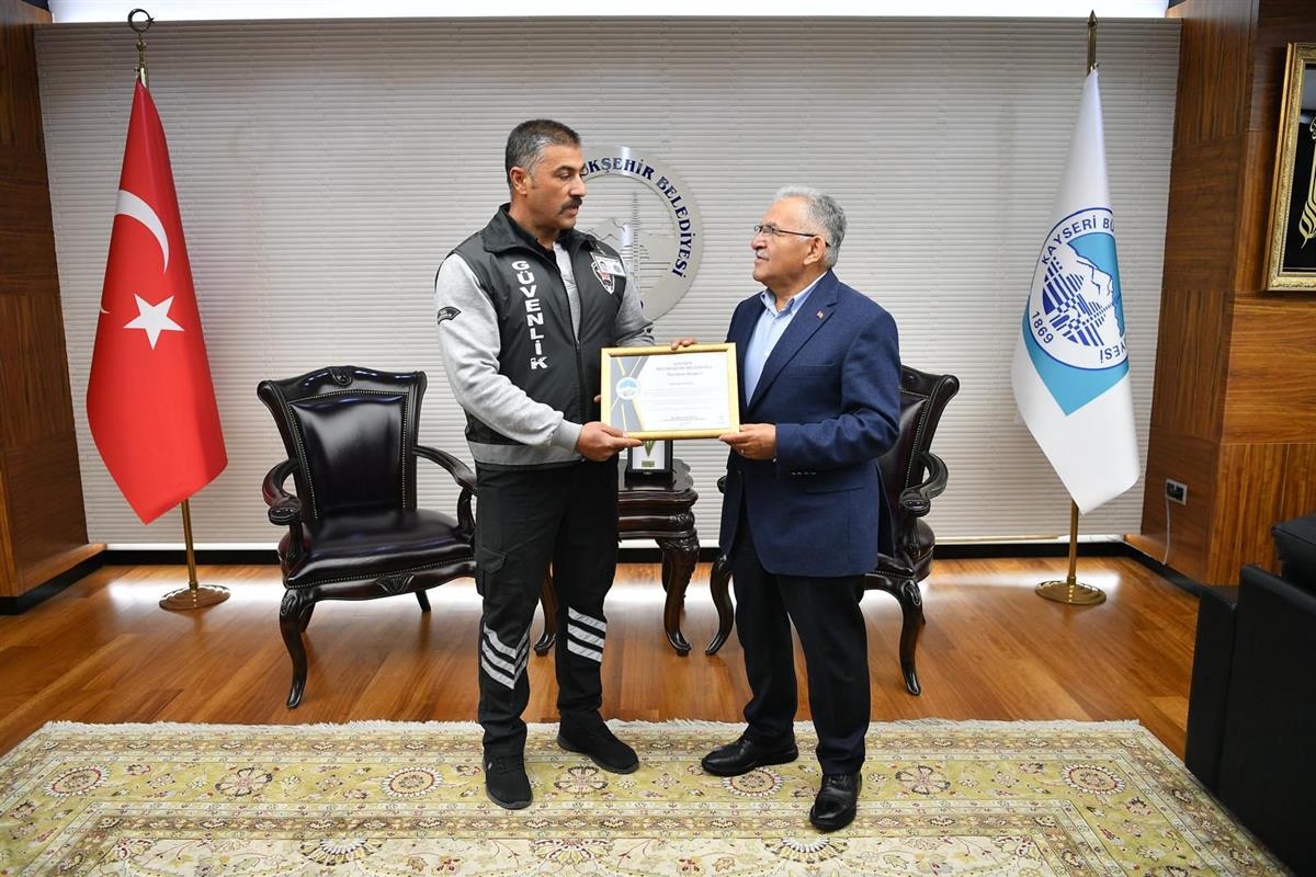 Başkan Büyükkılıç’tan, Raylı Sistem İstasyonunda Refleksiyle Hayat Kurtaran Personele Teşekkür Belgesi