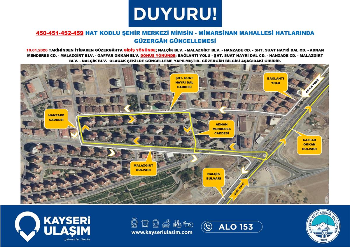 ŞEHİR MERKEZİ MİMSİN - MİMARSİNAN MAHALLESİ HATLARINDA GÜZERGÂH GÜNCELLEMESİ