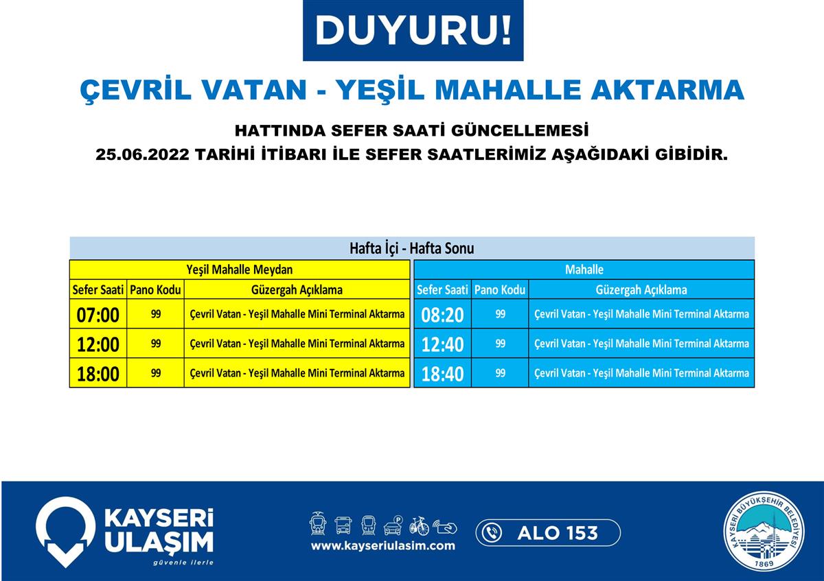 26 Temmuz 2025 Tarihinden itibaren Bazı Sefer Saat ve Güzergâh Güncellemeleri...