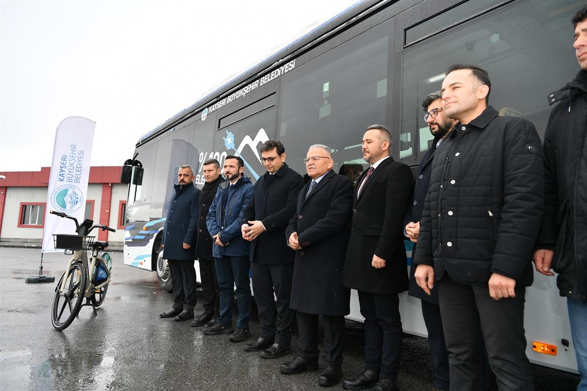 Kayseri Büyükşehir Belediye Başkanı Dr. Memduh Büyükkılıç, Büyükşehir bünyesindeki temiz enerjiyle, konforlu ve erişilebilir ulaşım için çalışmalarını sürdüren Ulaşım A.Ş.’de, otobüs filosuna katılan yüzde 100 elektrikli, sessiz ve sıfır emisyonlu yeni otobüs ve elektrikli bisikletleri inceleyerek bilgi aldı.